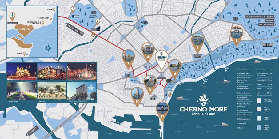 - The Airport is approximately 11 km away from Hotel & Casino “Cherno More”.